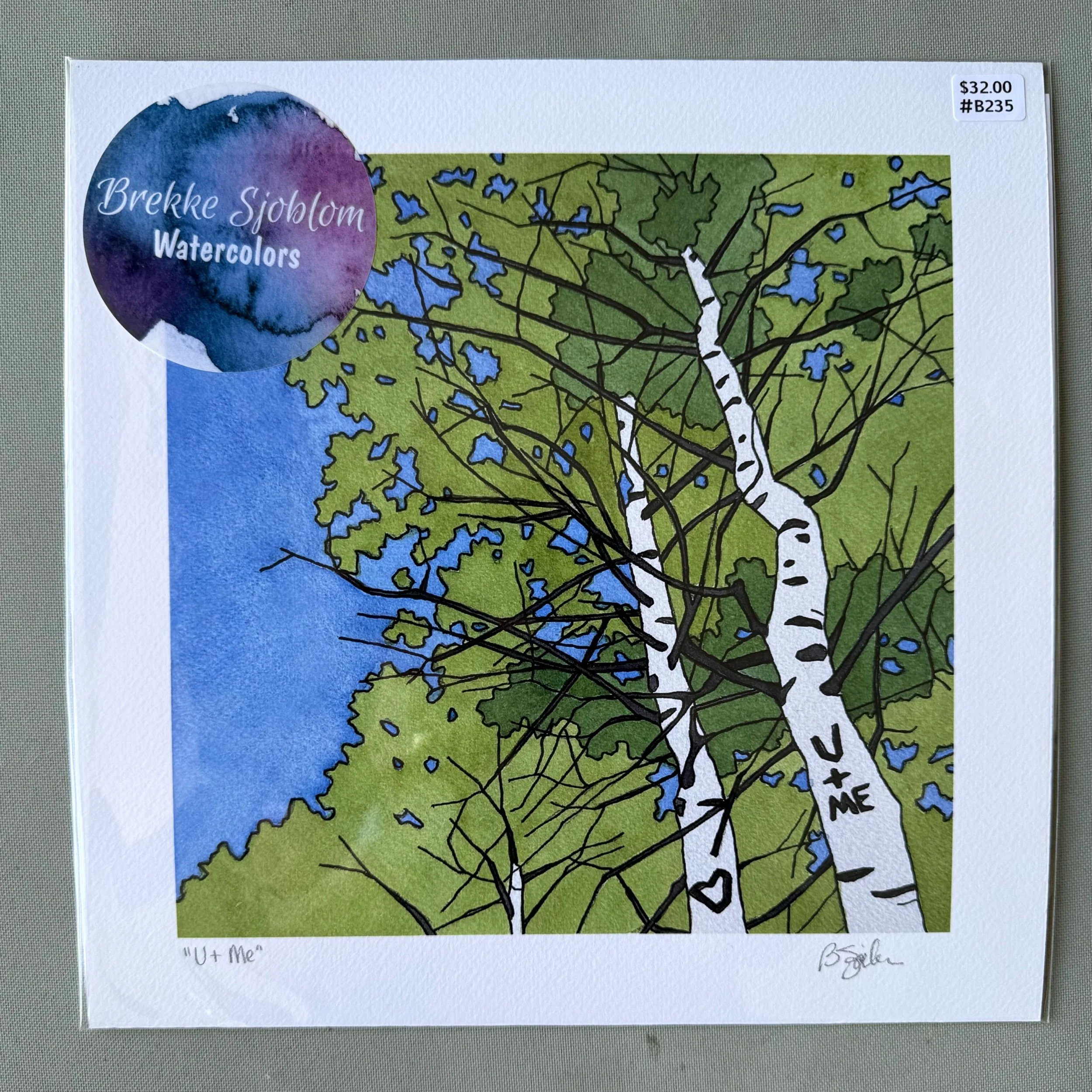 High quality reproduction of my original painting of two Aspen trees with U+Me carved into them. A great way to highlight your love without harming any trees.